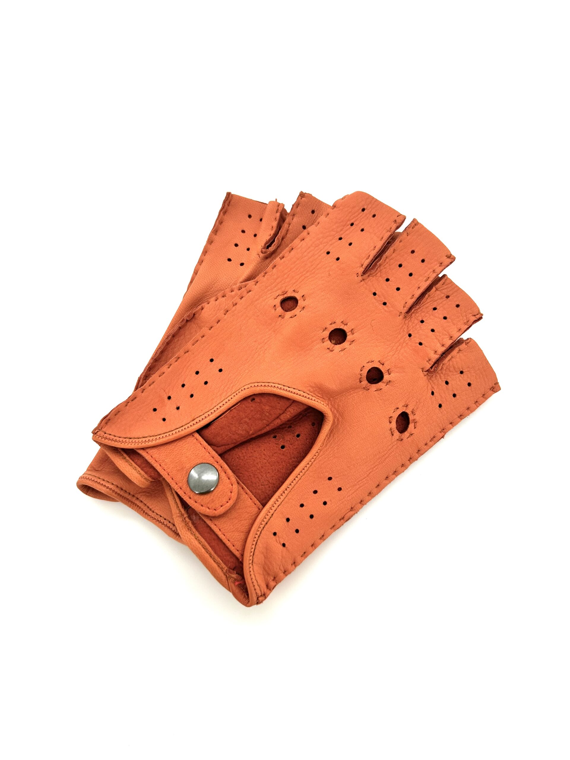 Guanti da guida in cervo arancioni uomo, cuciti a mano