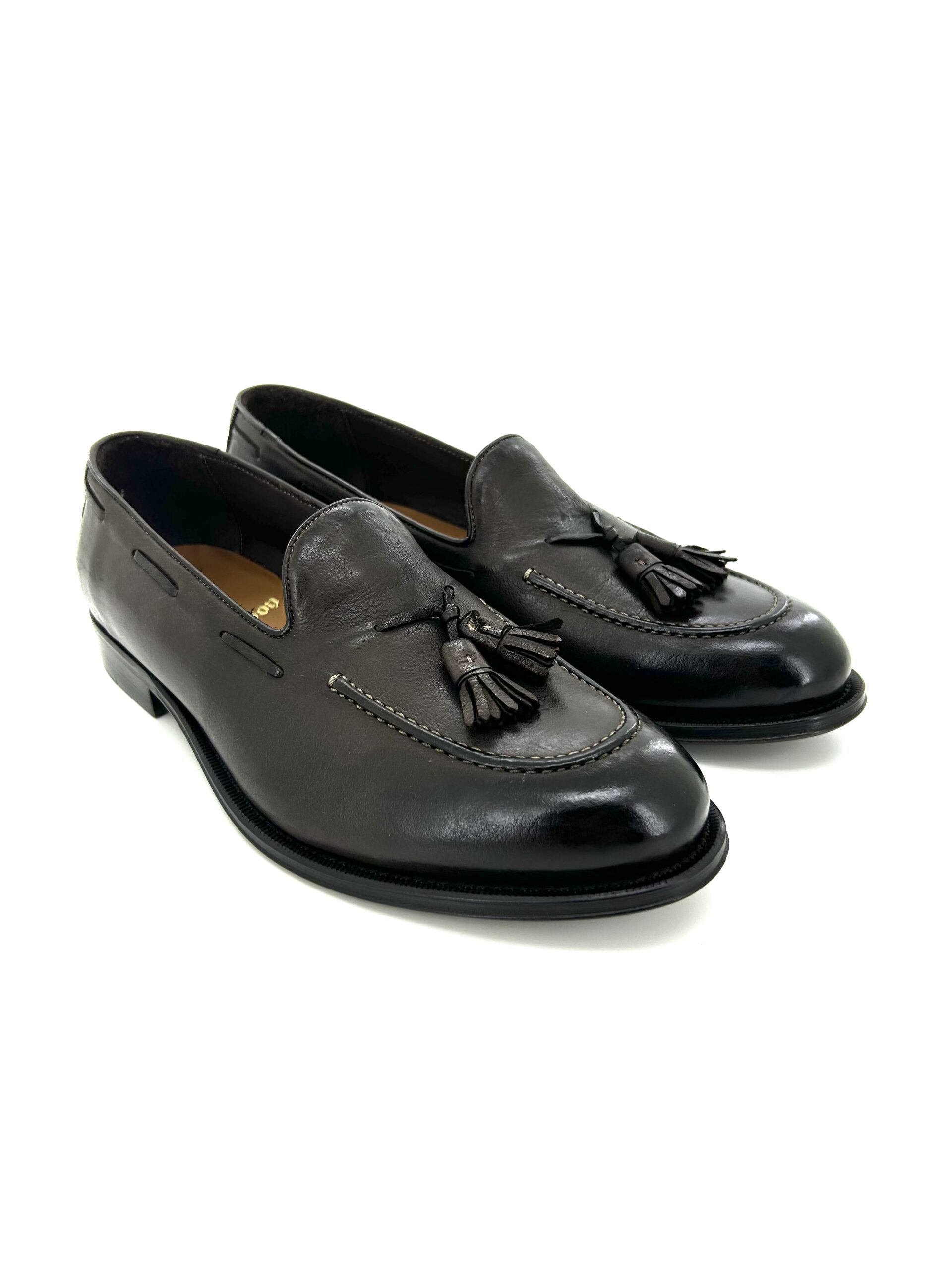 Sir Wilson mocassini con nappine uomo, in pelle marrone anticata, suola cuoio