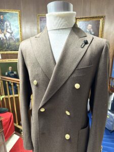 abito doppio petto sartoriale Lardini lana e cashmere nocciola