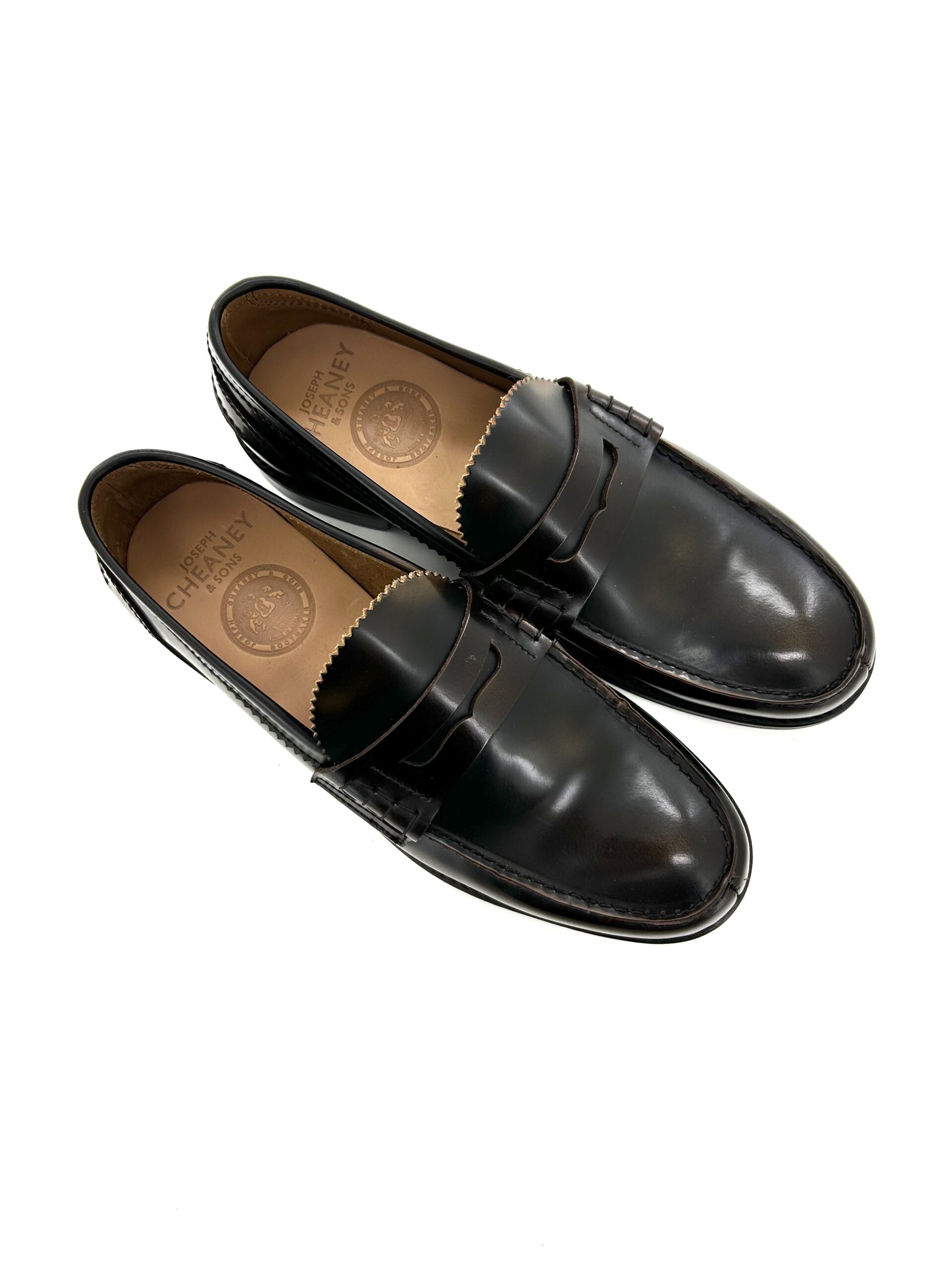 Ogni paio di questi raffinati mocassini in pelle Cheaney dimostra un impegno per la qualità e un fascino senza tempo. La finitura marrone anticata della pelle conferisce una profondità di colore e un carattere sottile che migliora solo con l’uso. Progettati per il gentiluomo moderno che apprezza il lusso discreto, questi mocassini offrono comfort e uno stile impeccabile senza compromessi. La tradizionale silhouette del mocassino penny loafer è eseguita magistralmente, assicurando che queste scarpe rimangano una scelta classica per gli anni a venire.