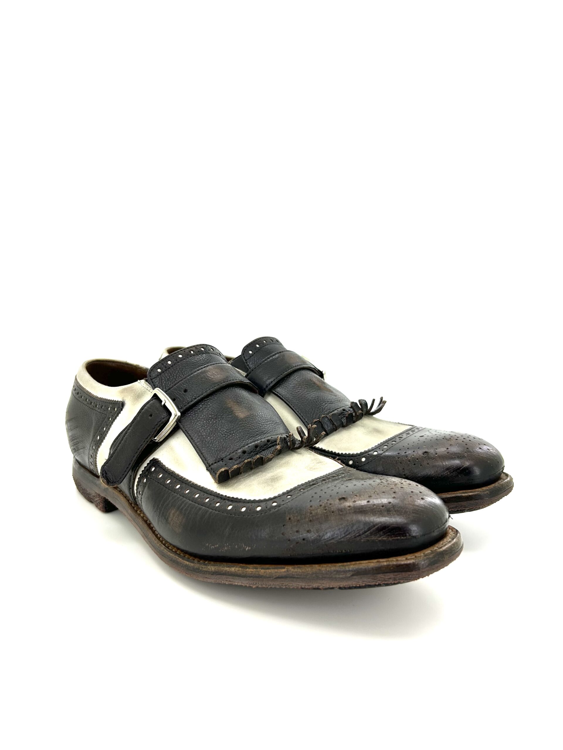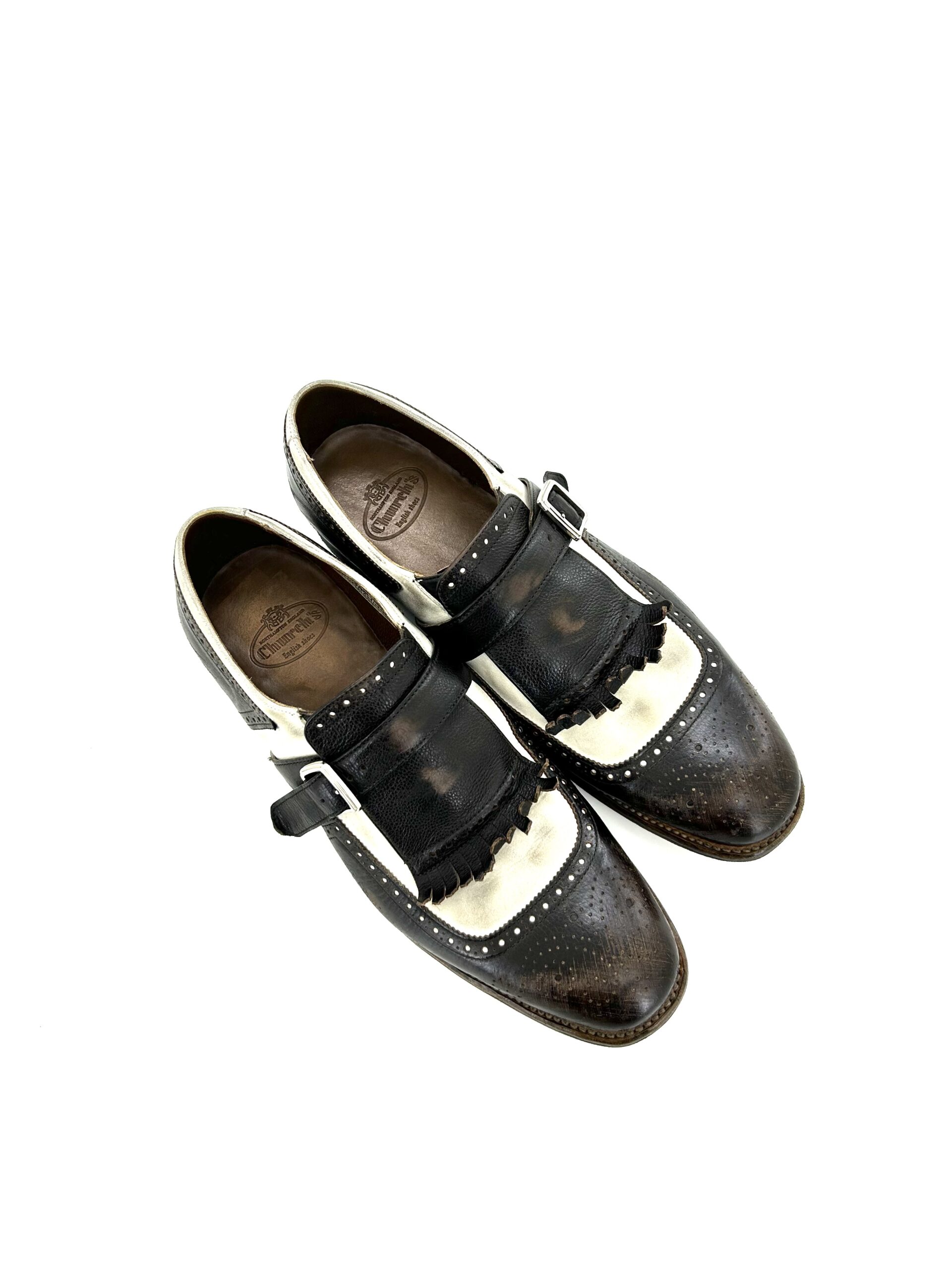 - DESIGN: Scarpa bicolore monk strap con dettagli brogue intricati.
