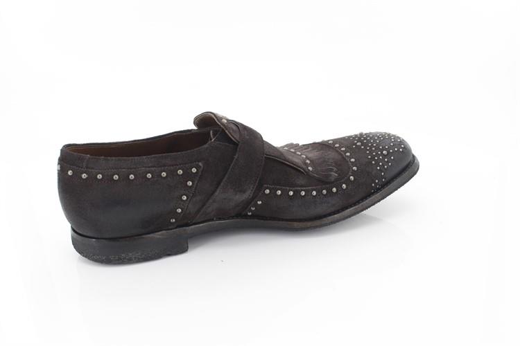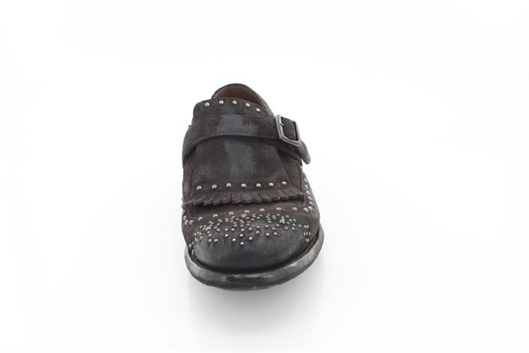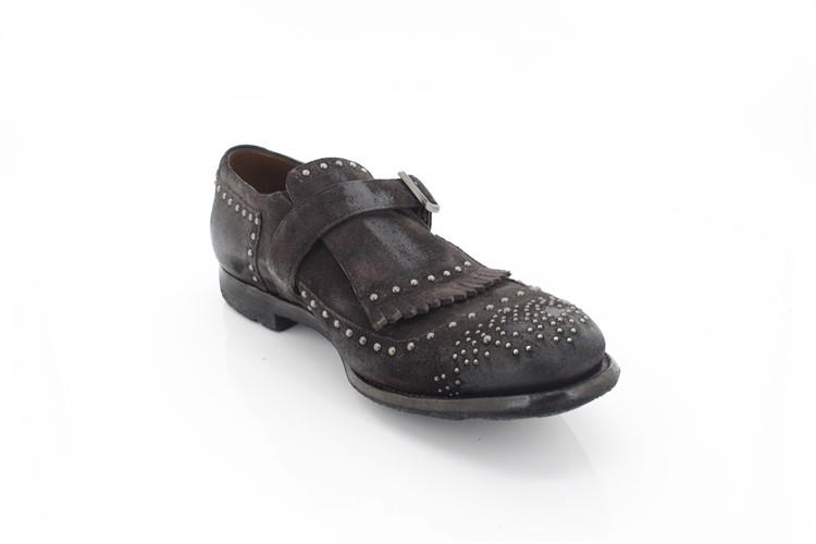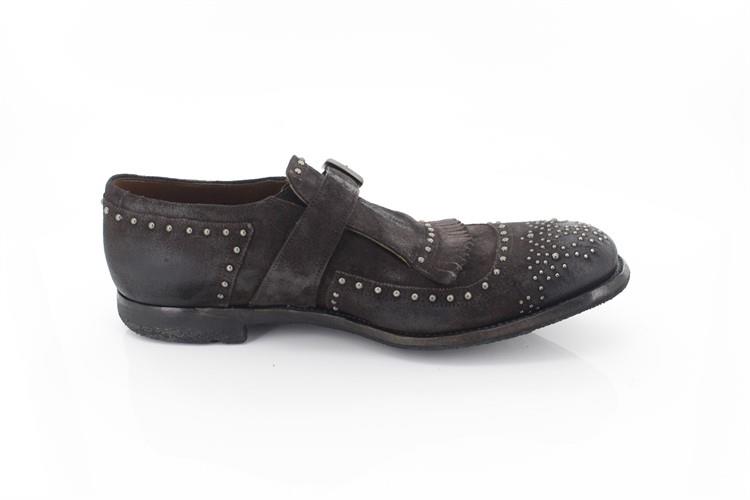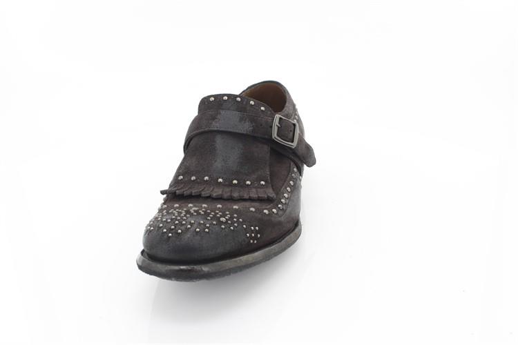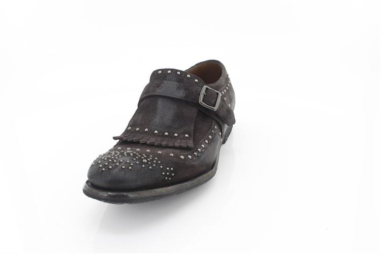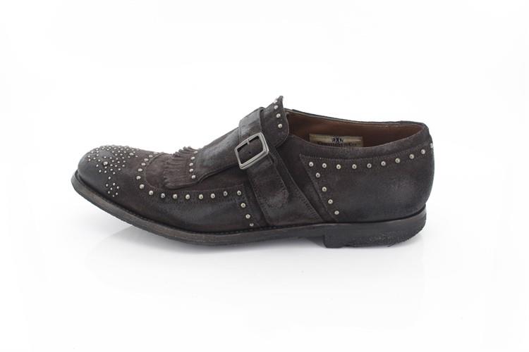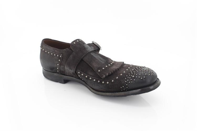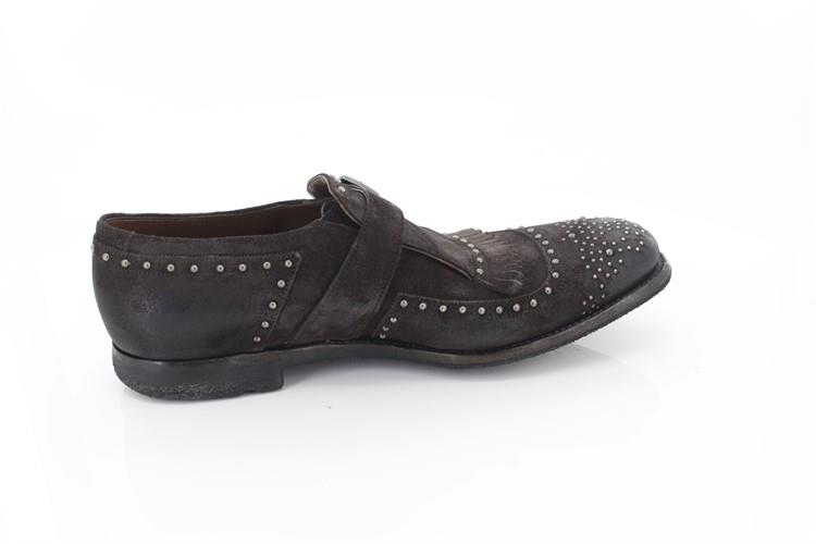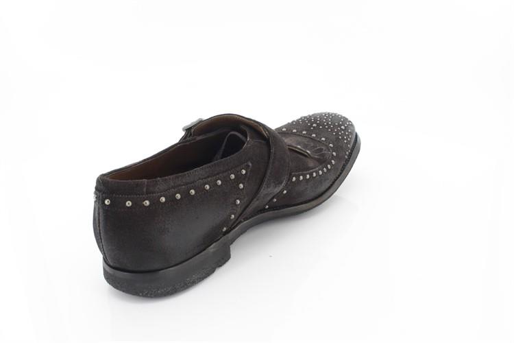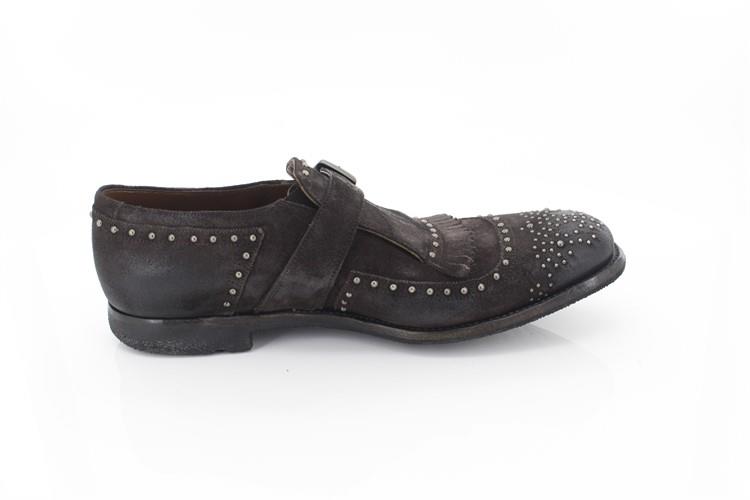 - DESIGN: Monk strap singola con tomaia frangiata e borchie metalliche