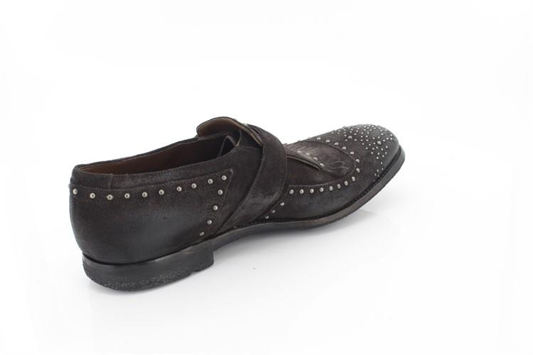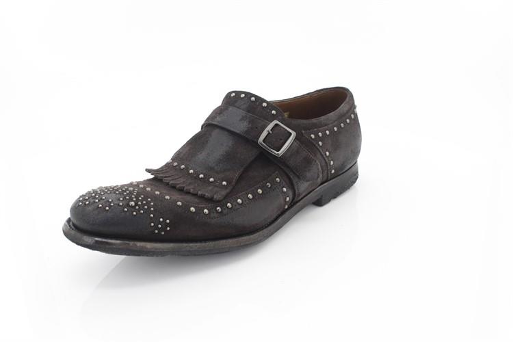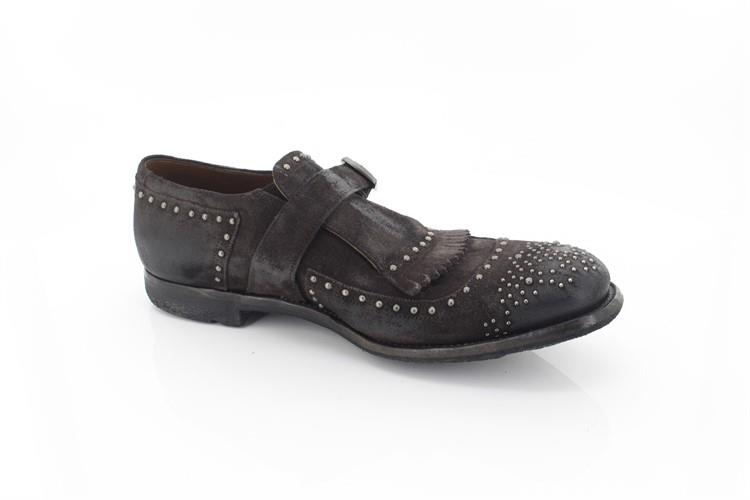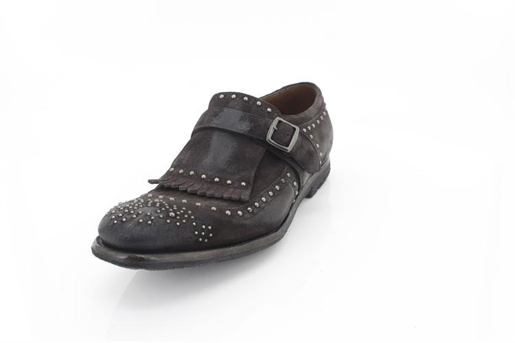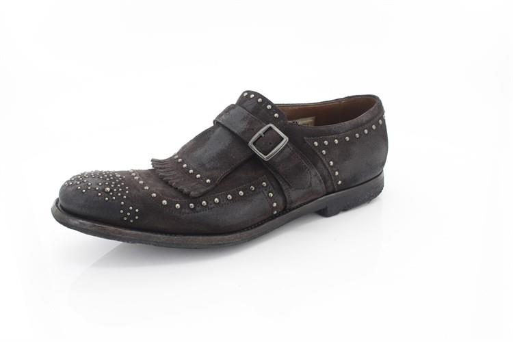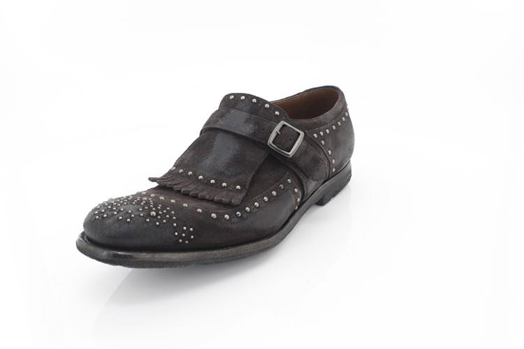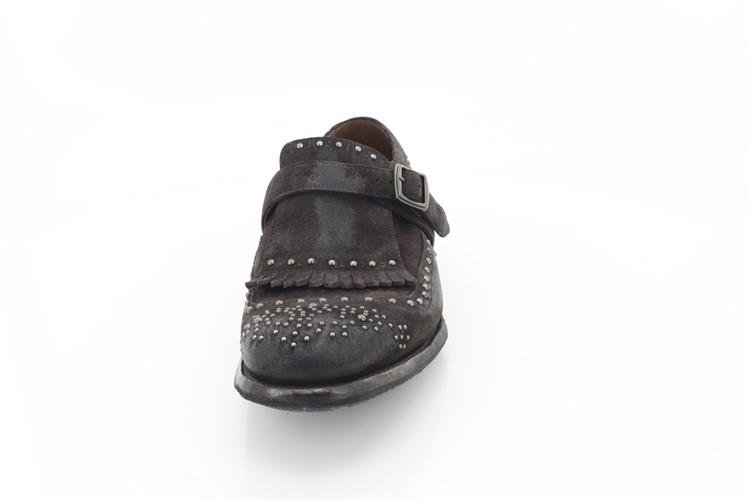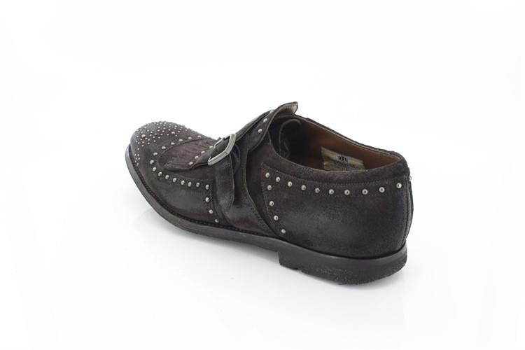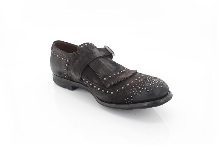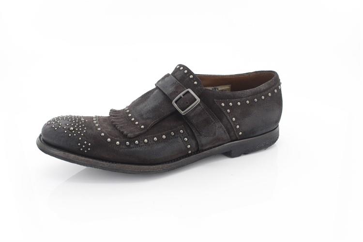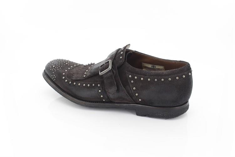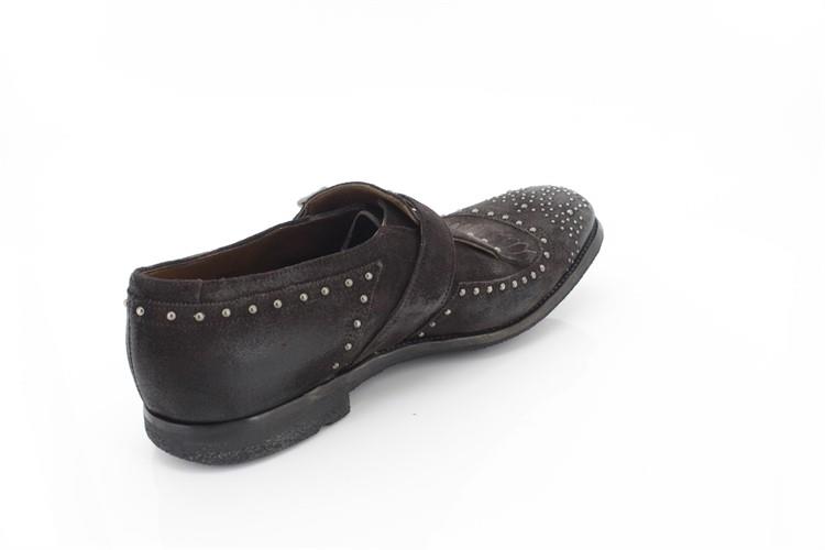 - DESIGN: Monk strap singola con tomaia frangiata e borchie metalliche