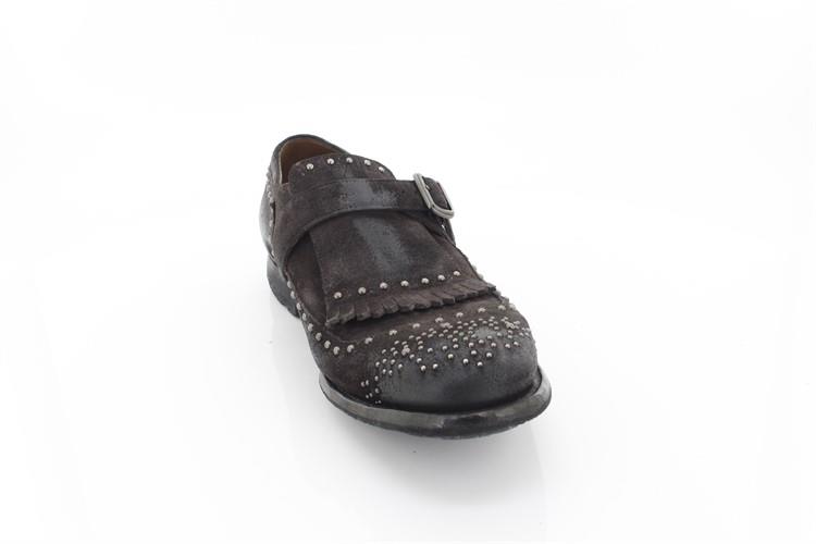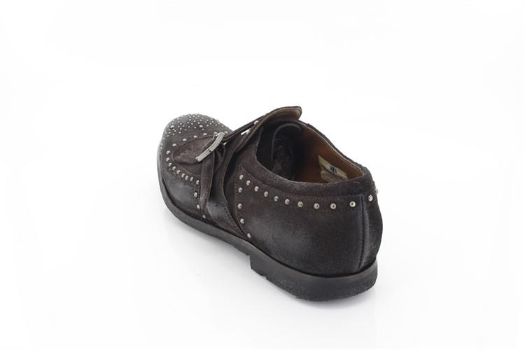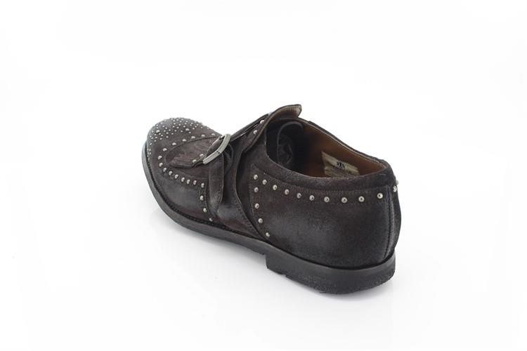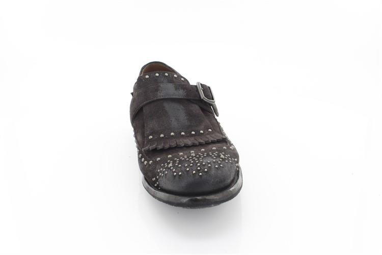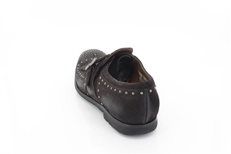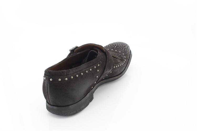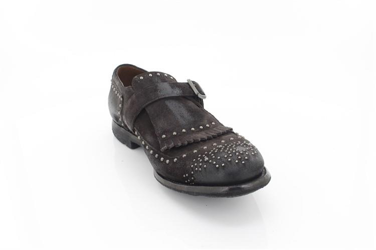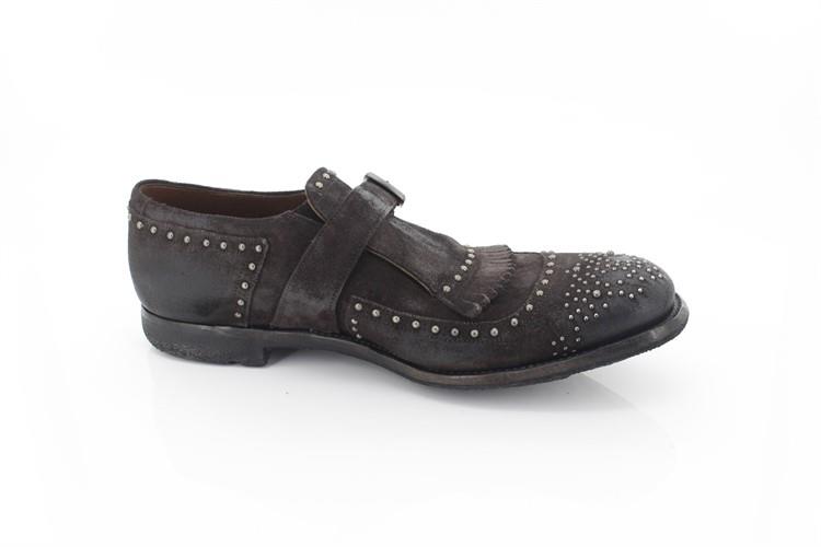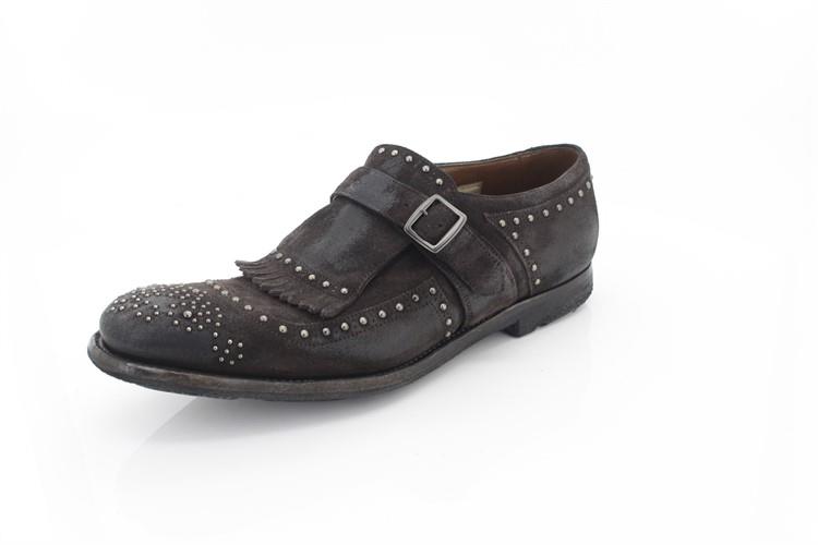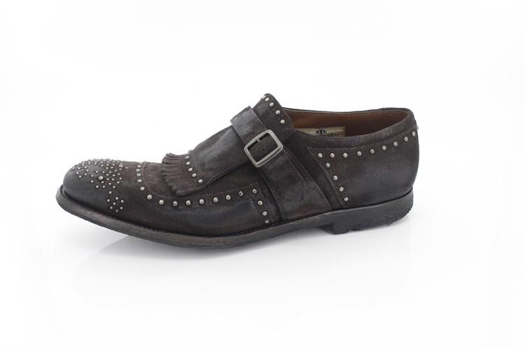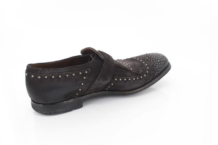 - DESIGN: Monk strap singola con tomaia frangiata e borchie metalliche