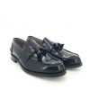 La profonda tonalità blu navy di questi mocassini offre un’alternativa versatile al nero tradizionale, proponendo un colore sofisticato che si abbina senza sforzo a una vasta gamma di abbigliamento, dalla sartoria impeccabile agli outfit smart casual. La finitura lucida della pelle esalta l’estetica raffinata della scarpa, garantendo un aspetto distinto. L’iconico dettaglio con nappa, noto come “nappina” in italiano, aggiunge un tocco di fascino classico, rendendoli più che semplici scarpe – sono una dichiarazione di gusto raffinato. Questi mocassini blu navy Church’s sono progettati per offrire comfort e durabilità, promettendo di essere un capo essenziale nel tuo guardaroba per anni a venire.