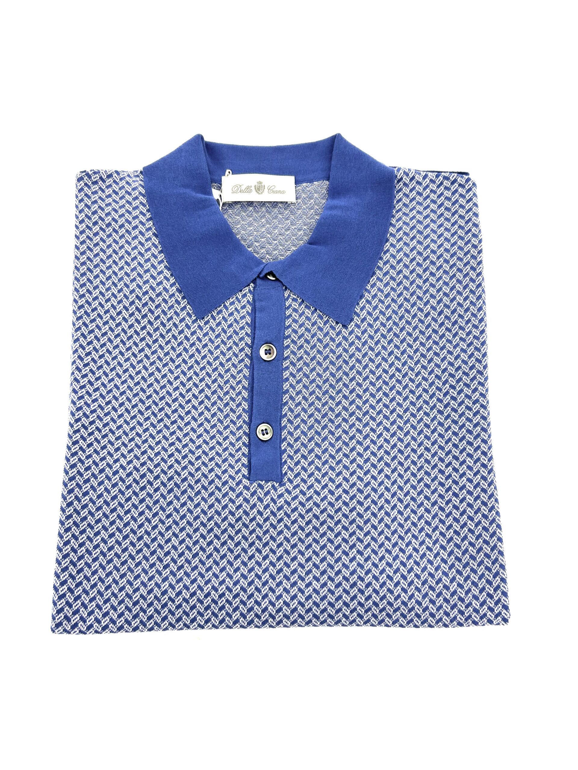 Polo microdisegno bianco e blu