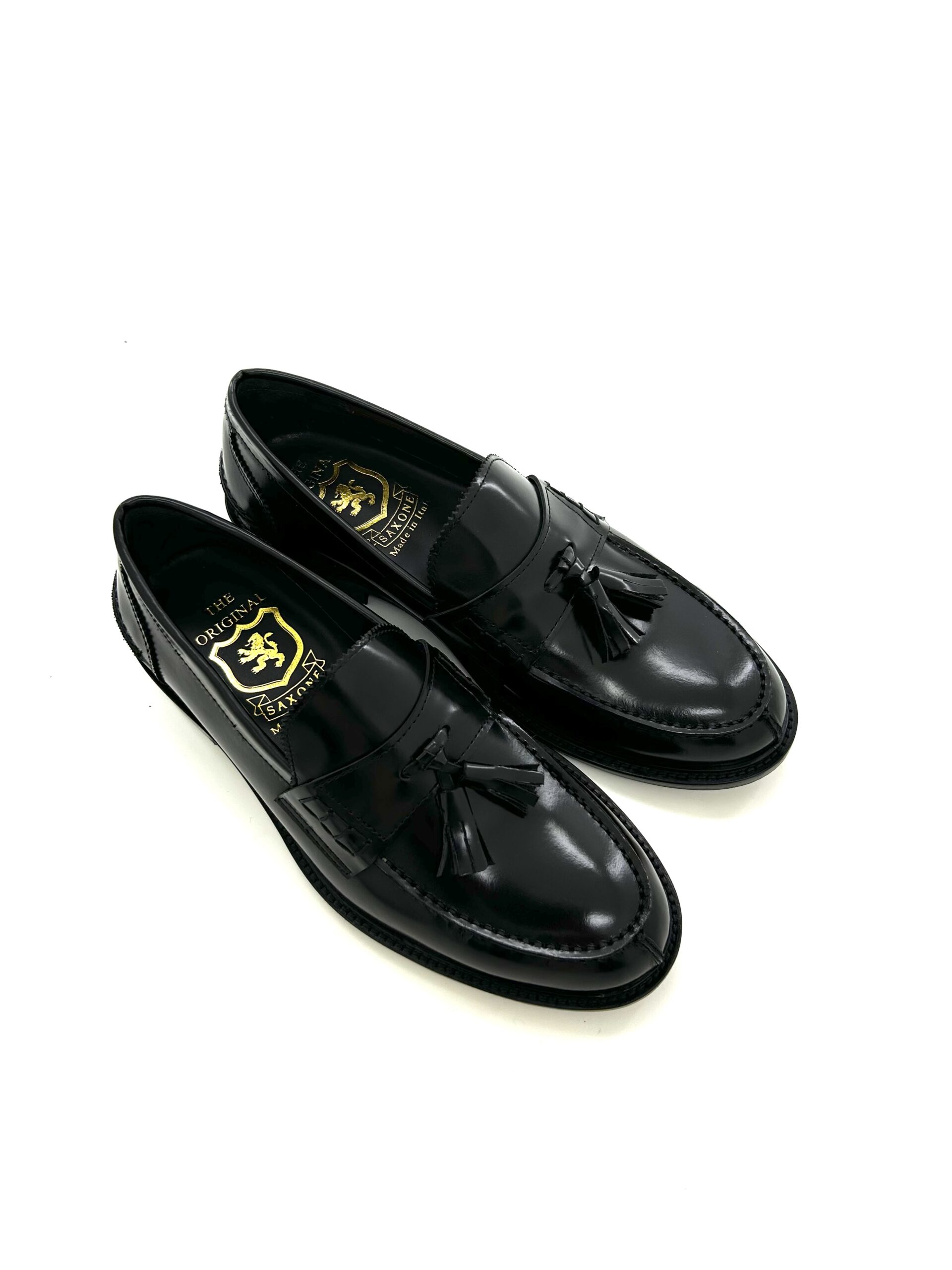 Presentiamo i mocassini con nappine da uomo Saxone, una testimonianza di stile maschile raffinato. Questi eccezionali mocassini neri con nappine sono meticolosamente realizzati in pregiata pelle binder polacca, offrendo una finitura lucida e una notevole durabilità. Progettati per il gentiluomo esigente, fondono armoniosamente eleganza tradizionale e comfort contemporaneo, rendendoli un’aggiunta indispensabile a qualsiasi guardaroba sofisticato.