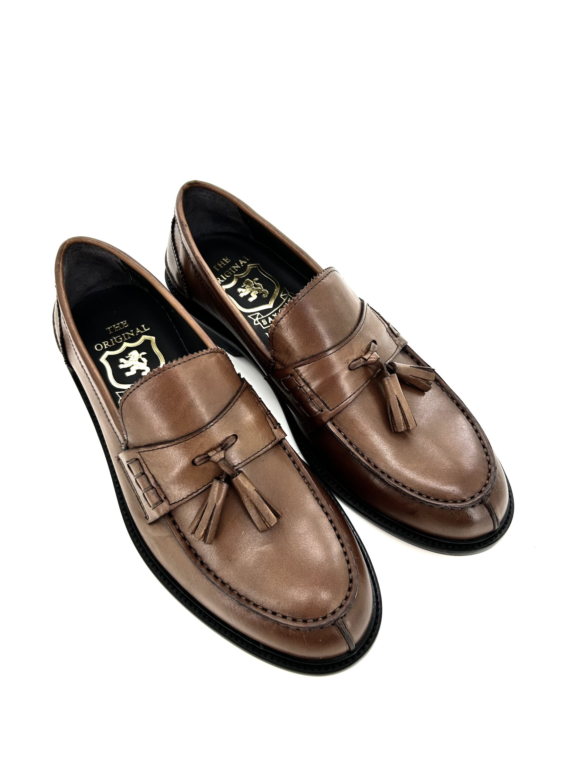 Il mocassino con nappine da uomo Saxone presenta una silhouette intramontabile, meticolosamente realizzata per il gentleman moderno. Questi squisiti mocassini con nappe color cognac sono realizzati in una ricca pelle lucida color cognac, che offre una profondità di colore distintiva e una lucentezza sottile che evoca un lusso discreto. Progettato sia per il comfort che per uno stile duraturo, questo mocassino è una testimonianza dell’arte calzaturiera tradizionale.