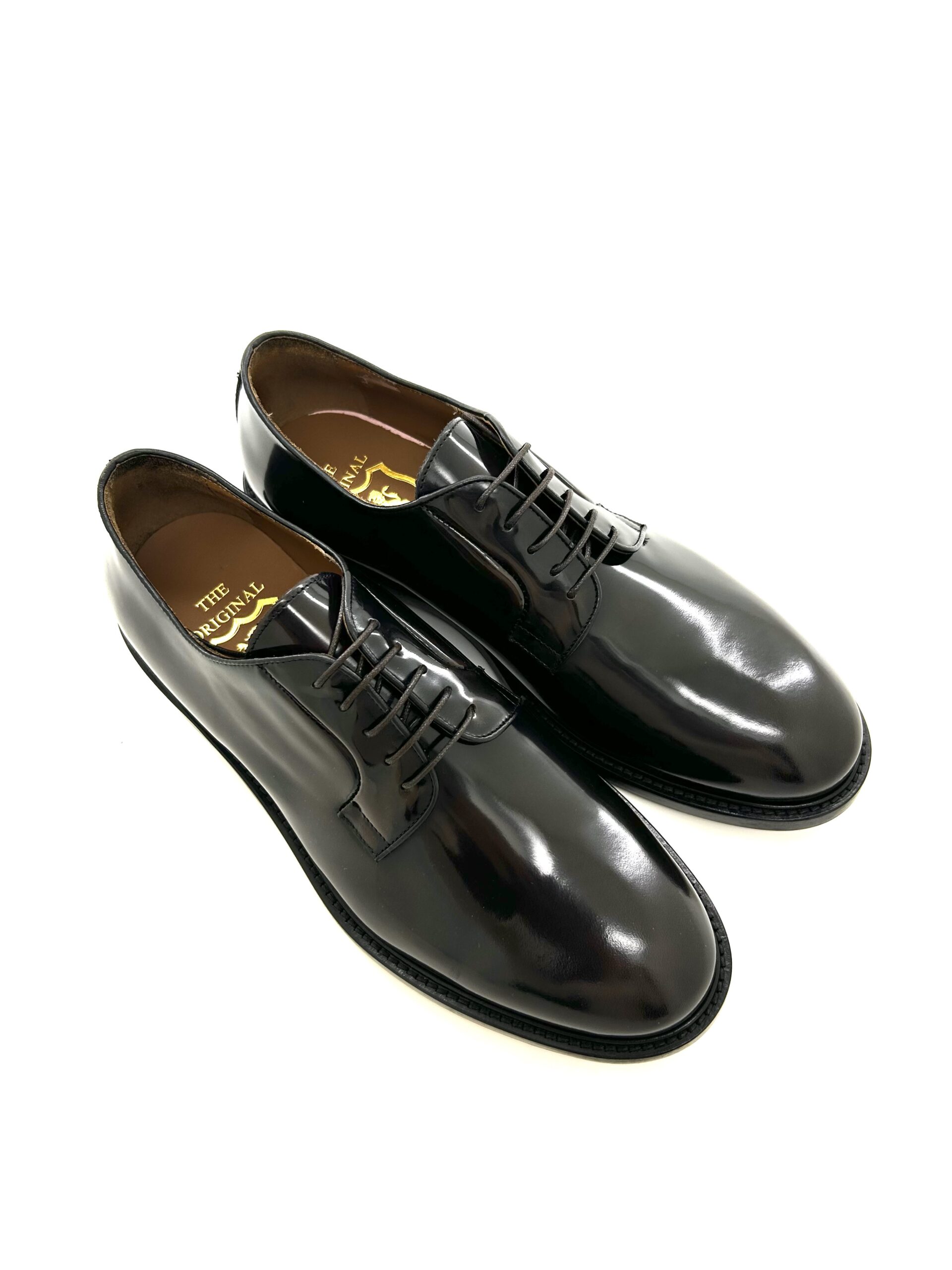 Ogni paio di queste raffinate scarpe Derby in pelle nera è meticolosamente realizzato, riflettendo un impegno per la qualità che trascende le tendenze effimere. La finitura lucida della ricca pelle nera conferisce una lucentezza sobria, assicurando che queste scarpe Derby completino sia l’abbigliamento formale che gli outfit smart-casual con grazia naturale. La silhouette intramontabile, caratterizzata dal suo sistema di allacciatura aperto, offre sia comfort che un’estetica distinta.