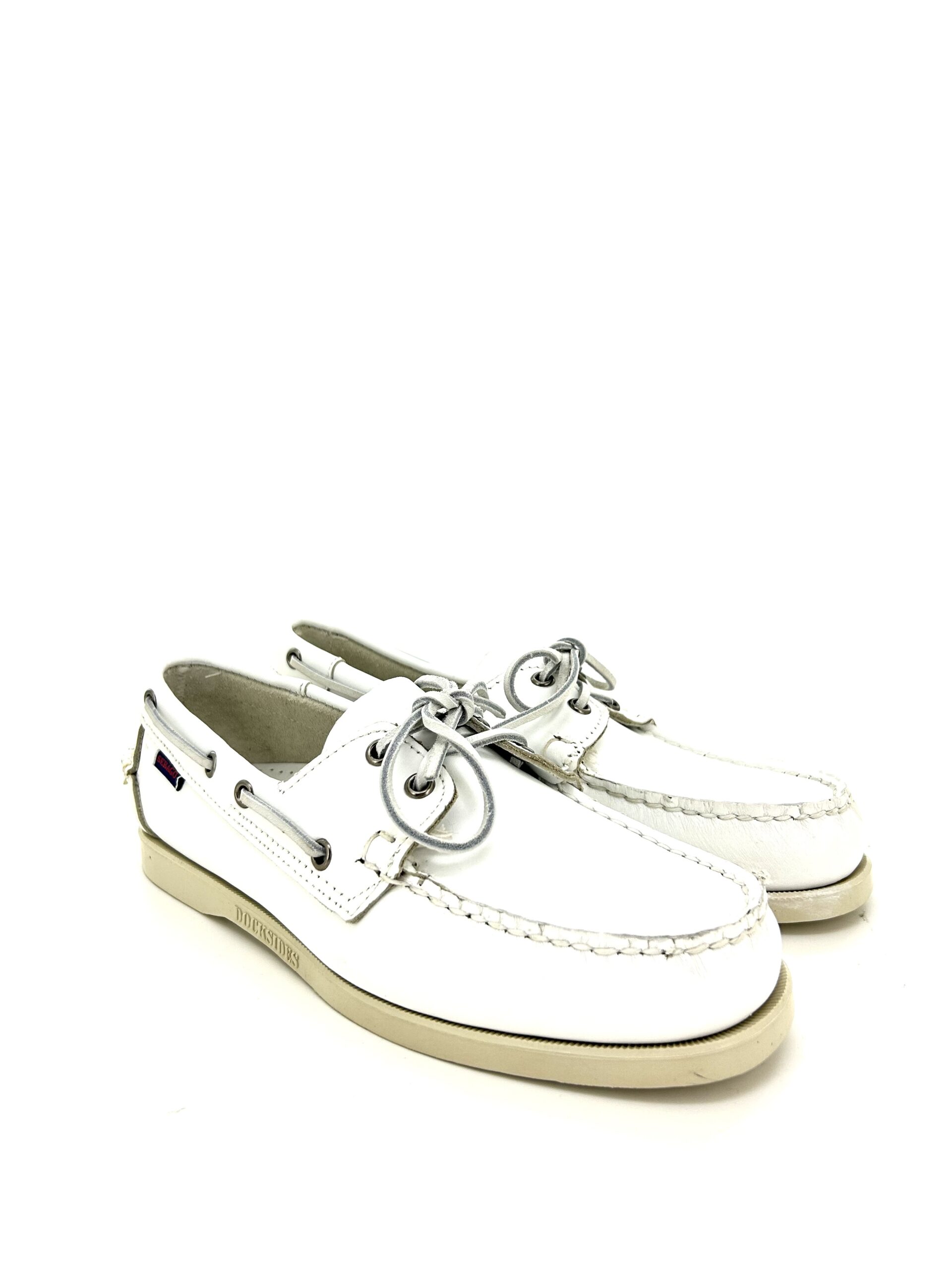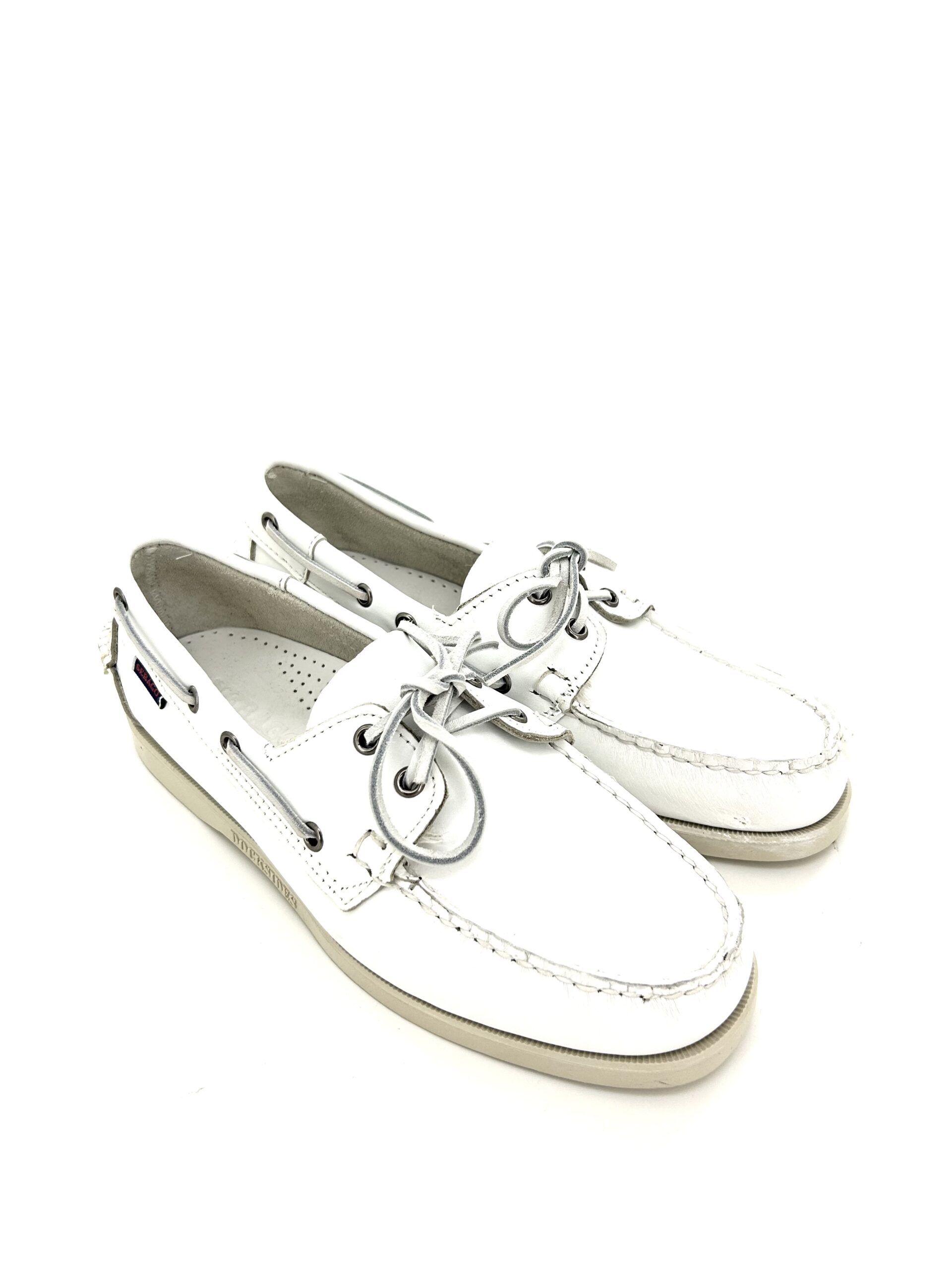 Sebago docksides, allacciata bianca, suola chiara