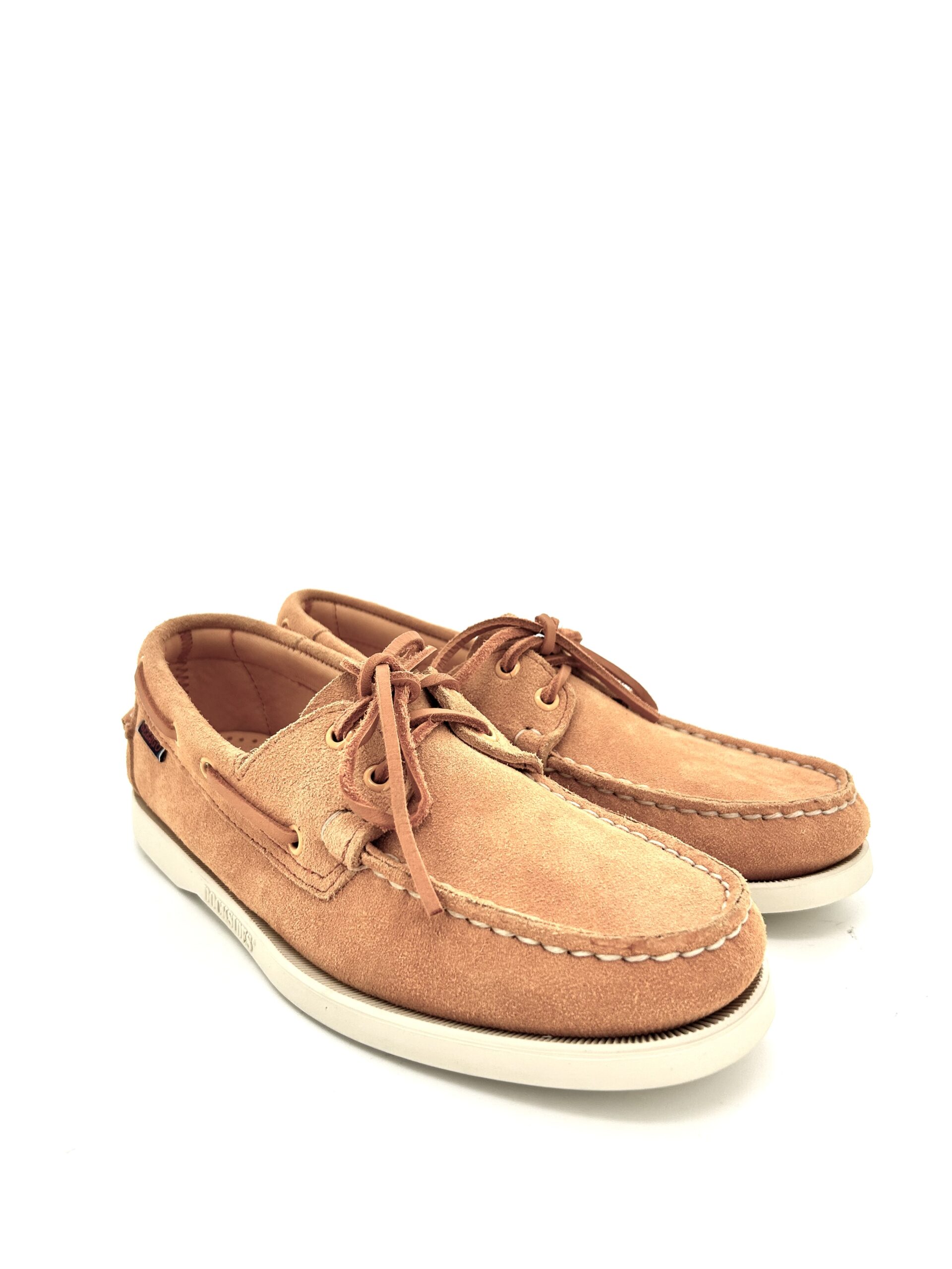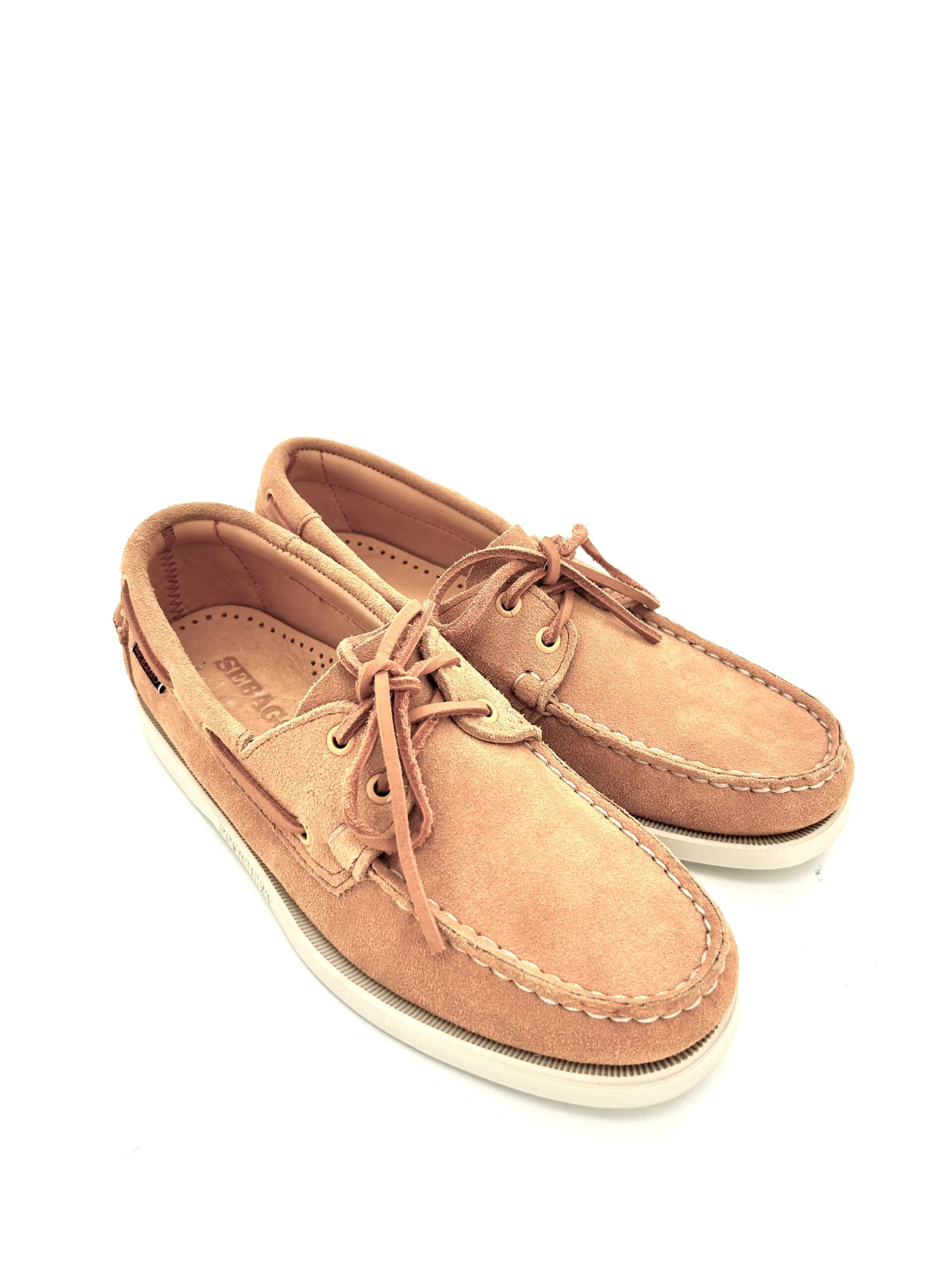 Sebago docksides, allacciata vela, scamosciata salmone, suola chiara
