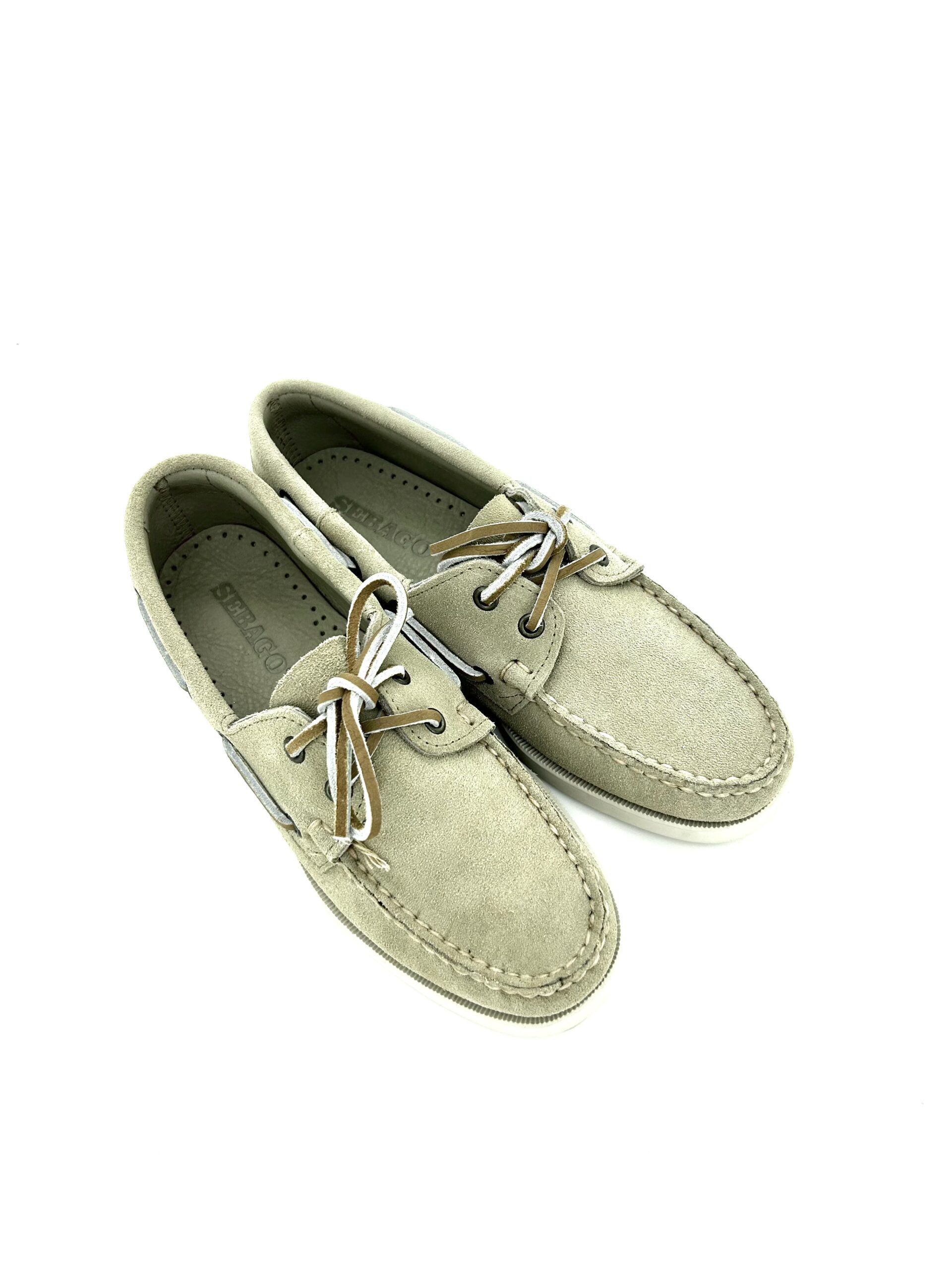 Sebago docksides donna, allacciate vela, in pelle scamosciata beige, suola chiara