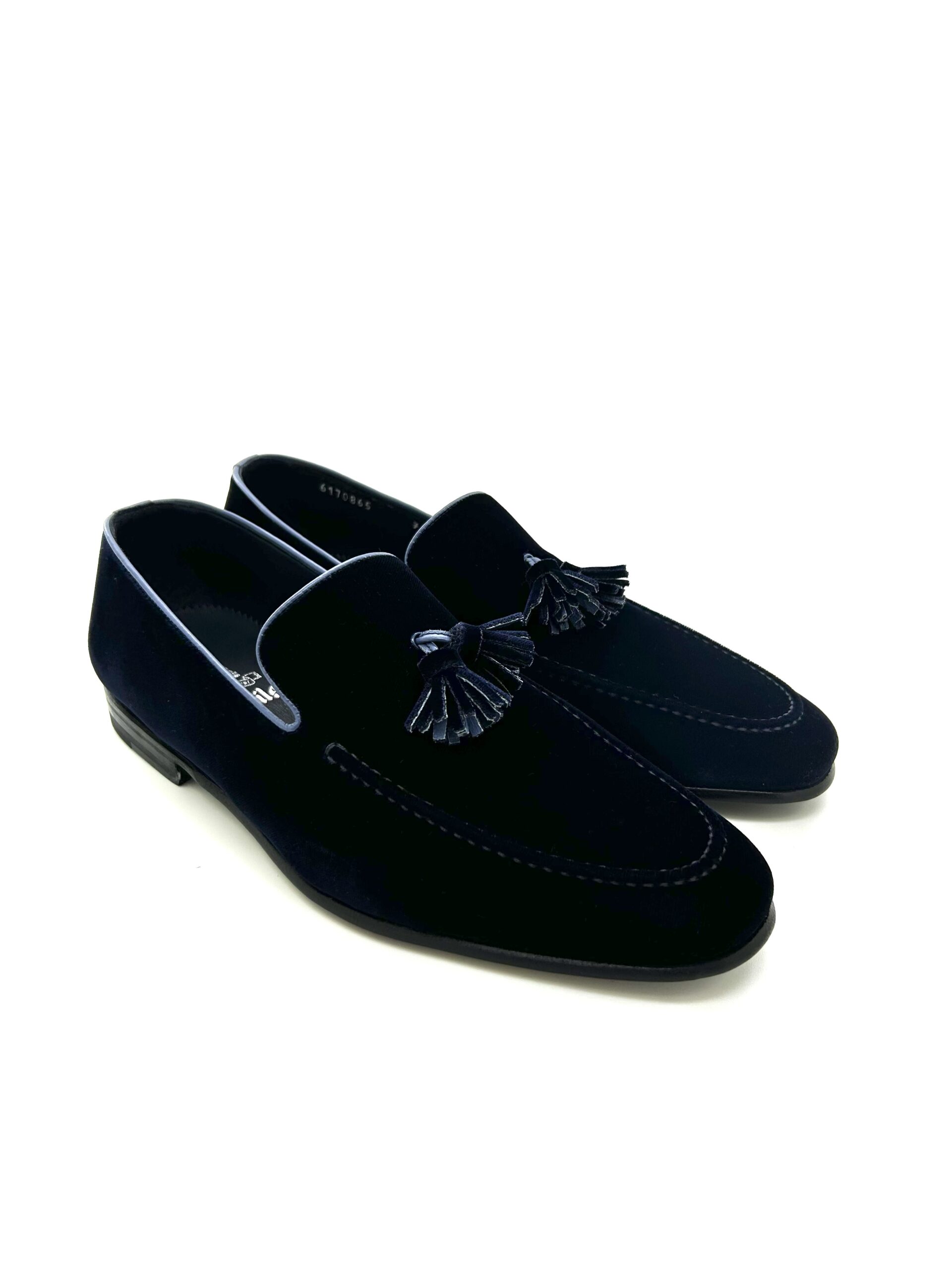 Ogni paio di questi mocassini finemente costruiti presenta caratteristiche squisite, inclusa una sottile profilatura azzurra che delinea l’apertura, fornendo un raffinato contrasto con il velluto profondo. Il dettaglio tradizionale con nappina aggiunge un tocco di fascino classico, esaltando il fascino complessivo della scarpa. Questi mocassini in velluto sono progettati per offrire sia comfort che un’estetica impeccabile, perfetti per eventi formali o per aggiungere un tocco di classe ad abbinamenti smart casual.
