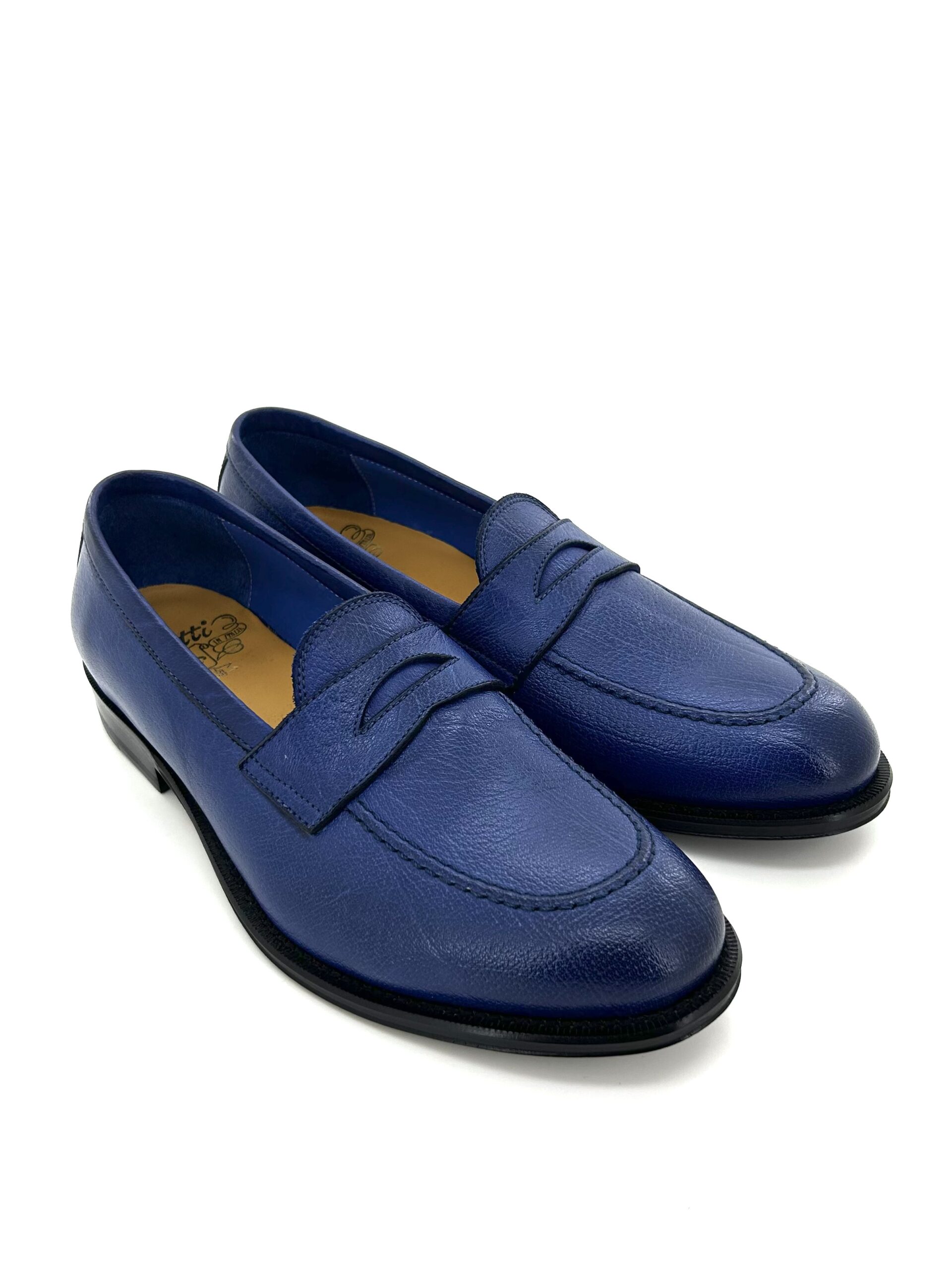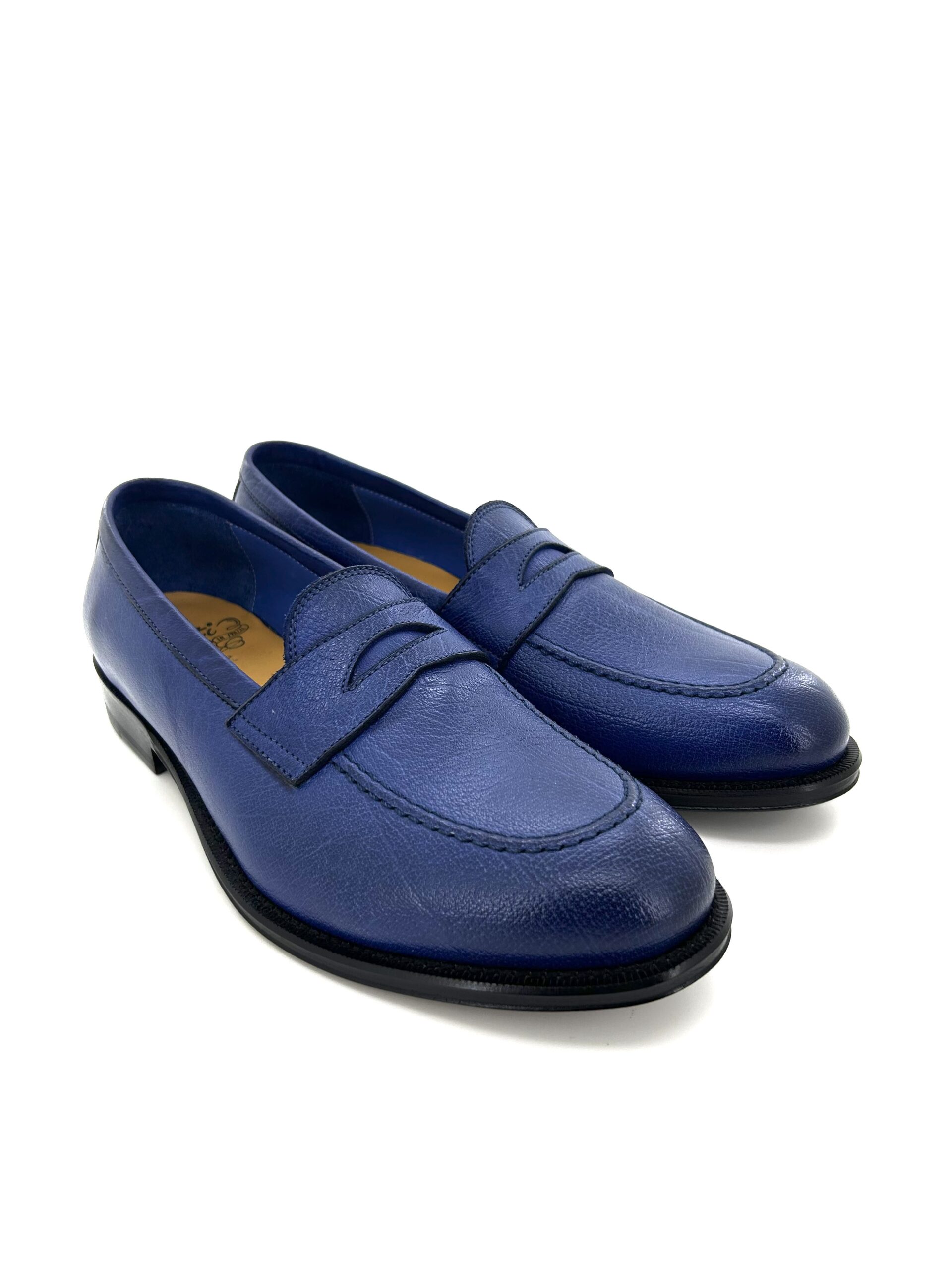 • MATERIALE: Tomaia in pelle blu anticata, suola in cuoio.