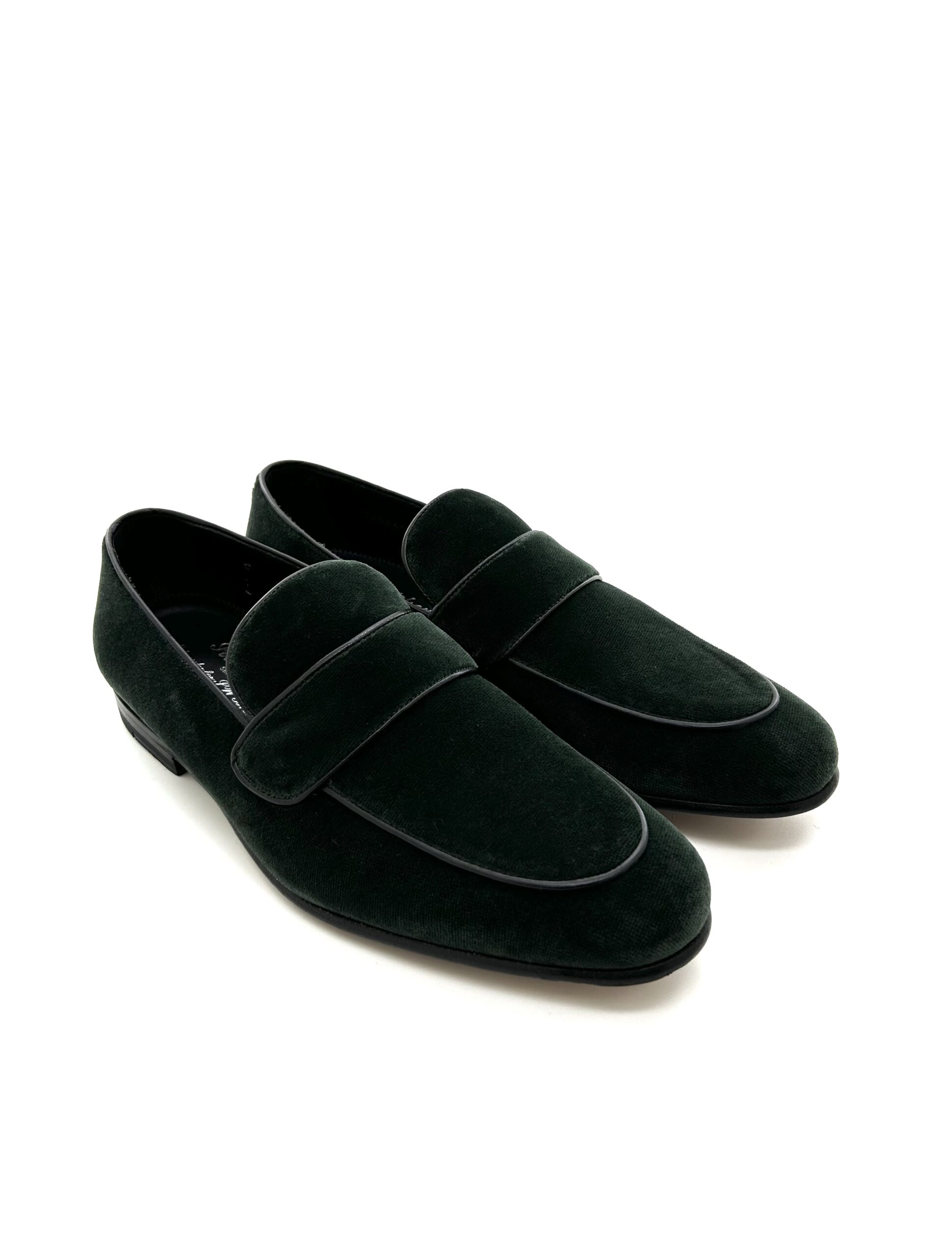 La costruzione di questi mocassini si concentra sull’offrire una calzata confortevole pur mantenendo la loro forma elegante. L’interno è progettato per avvolgere il piede, assicurando che questi mocassini in velluto verde siano tanto piacevoli da indossare quanto da ammirare. Sono un’aggiunta essenziale per chi cerca calzature che trascendano le mode passeggere, offrendo un pezzo che rimarrà un caposaldo di un guardaroba ben curato per gli anni a venire.